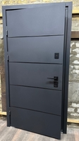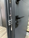 3 петлі, ручка на розетті, ексцентрик, поріг з нержавіючої сталі, нічний засув. чорна фурнітура